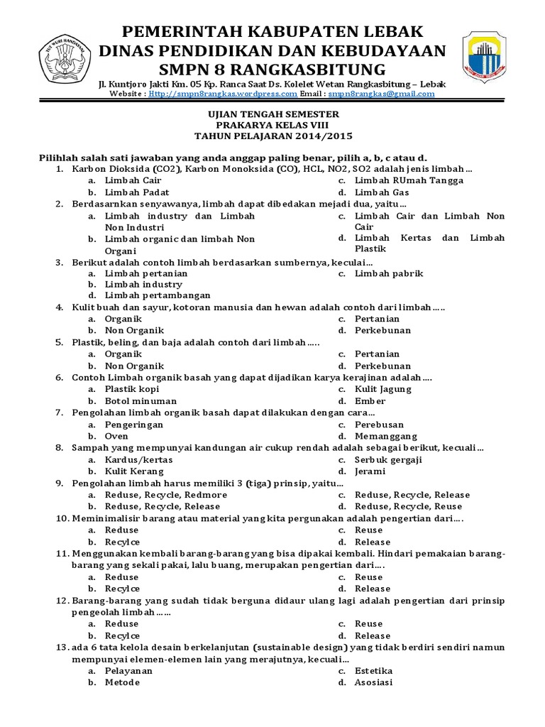 Soal Ukk Prakarya Kelas 8 Semester 2 - Soal Prakarya Kelas ... from i2.wp.com Check spelling or type a new query. Maybe you would like to learn more about one of these? We did not find results for: Soal prakarya kelas 7 semester 2 pilihan ganda beserta jawabannya.